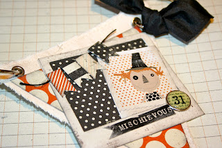 Look at the amazing dividers!!! Perfect for all sorts of scrappy stuff I have collected. I have been working on an upcoming class for a couple local stores and here is what I have come up with so far. It is with the Mischievous collection from My Mind's Eye. I adore this line and can not wait to hang this banner on my mantel. It is with a Maya Road canvas album. How I wish I could have this Raggedy Ann style doll in fabric for my rocking chair:o(