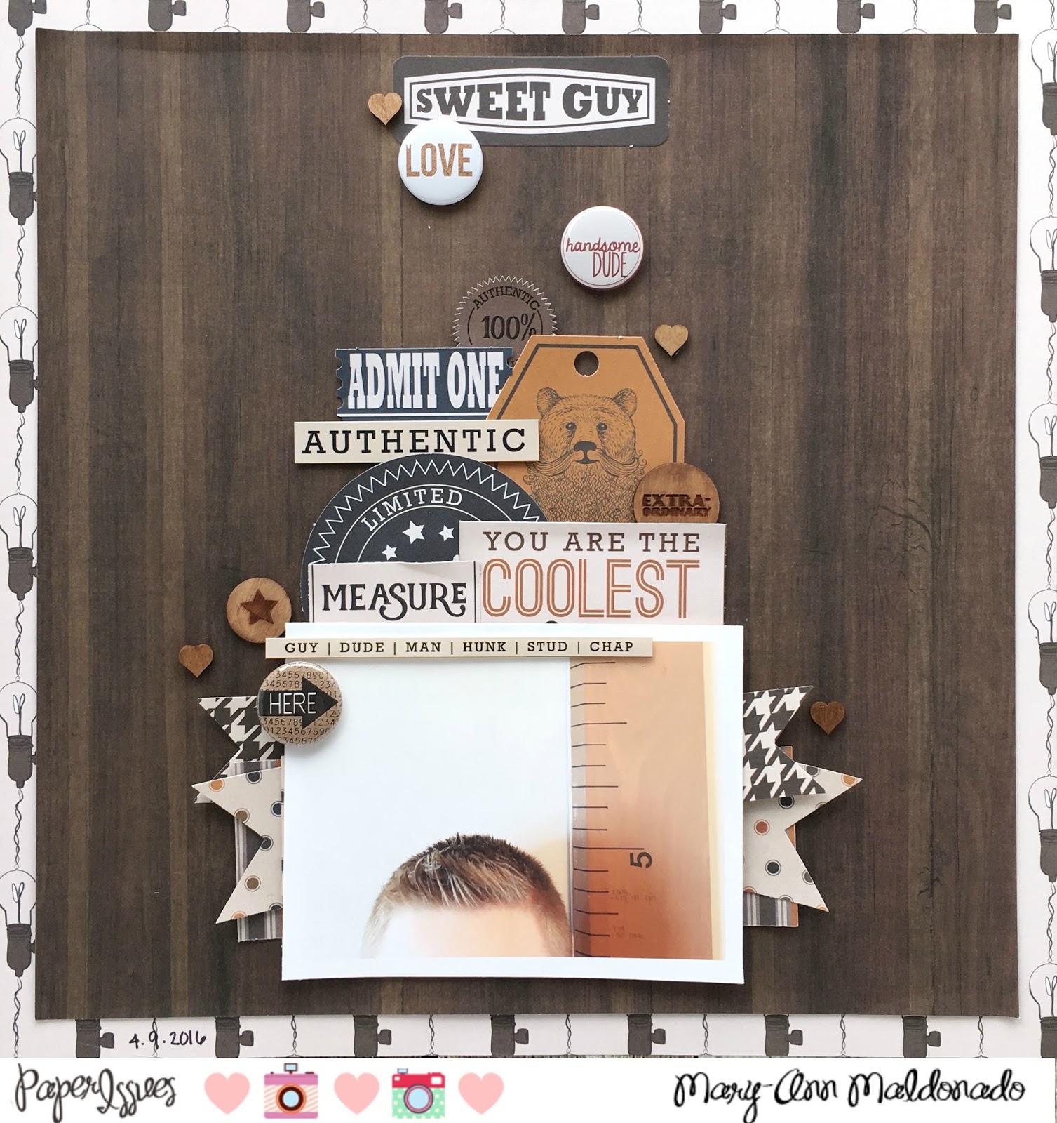 Join me on the A Flair for Buttons blog today, as a share a personal layout. One that is obvious by the title but the personal journaling is hidden behind the photo on the yellow tag.