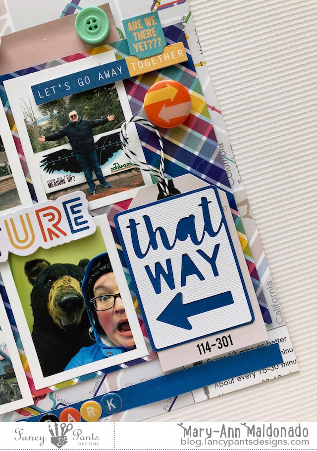 Ok, I really had a hard time narrowing down my photos for this layout idea!!! Problem is, I wanted to clump a ton of photos all on one page! I think it is successful because of the On Or Way Collection. I know it seems like lots of patters, layers, photos and cut files, but it works for me! I like busy.